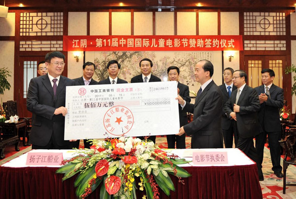 江蘇揚(yáng)子江船業(yè)集團(tuán)公司為第11屆中國(guó)國(guó)際兒童電影節(jié)贊助500萬(wàn)元